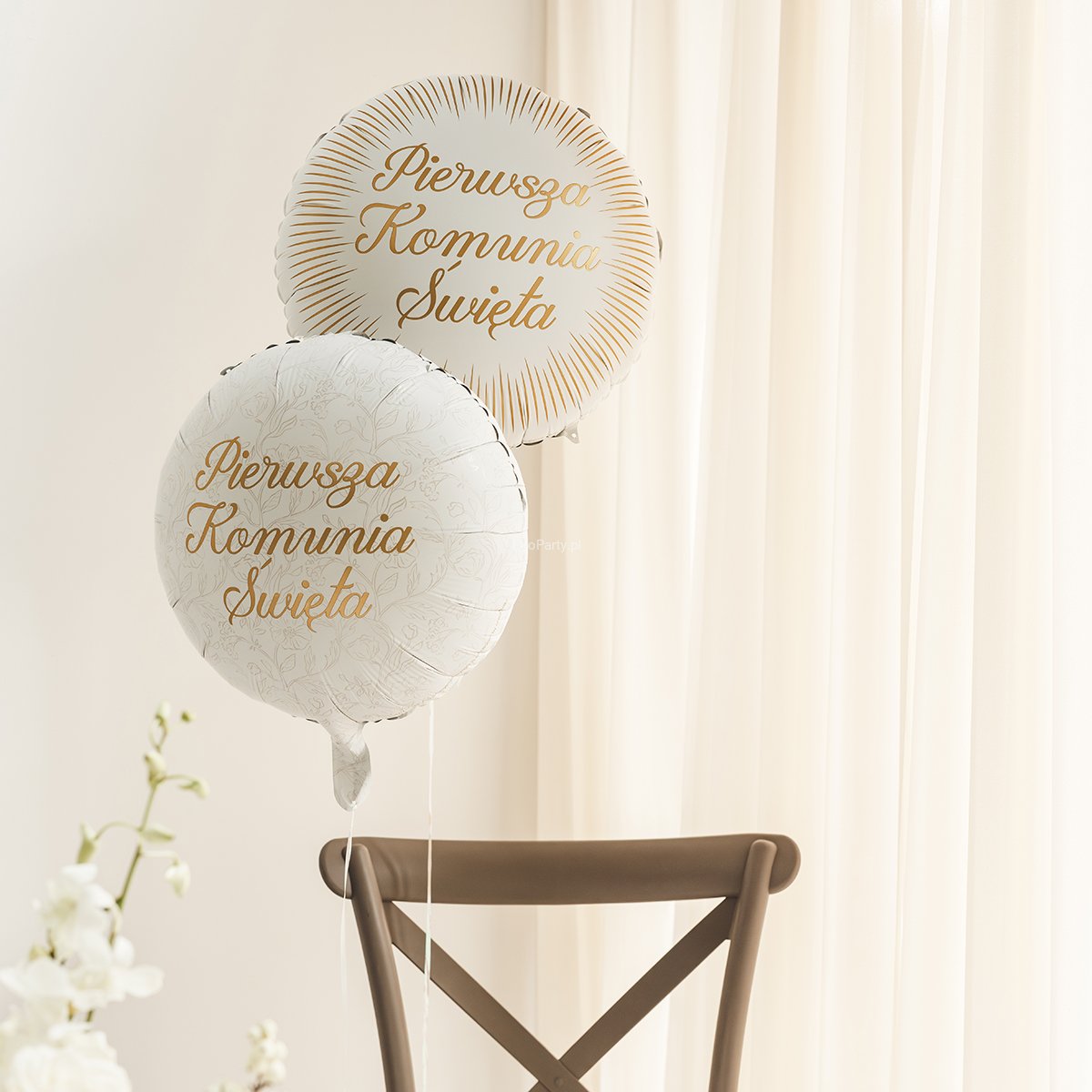 Klasyczny, okrągły kształt oraz delikatny design sprawiają, że balon świetnie prezentuje się zarówno jako samodzielna ozdoba, jak i element większej kompozycji balonowej. To idealny wybór do dekoracji sali, domu, stołu komunijnego lub sesji zdjęciowej.